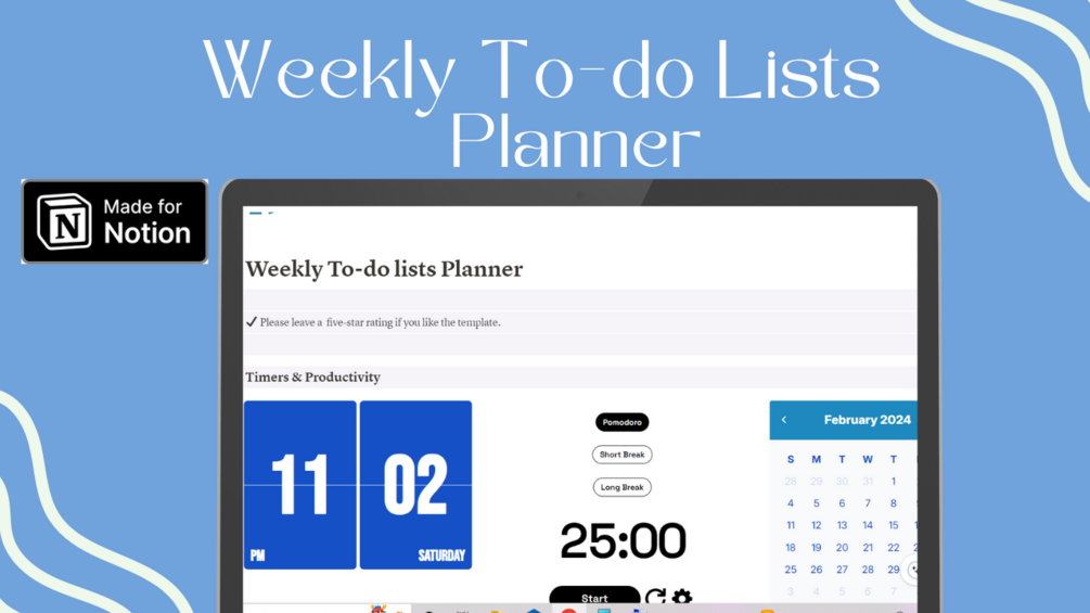 Make each week count with our Weekly To-Do Lists Planner Notion Template. Transform your Notion workspace into a hub of productivity, where organization meets simplicity. Download now and elevate your planning game to new heights!